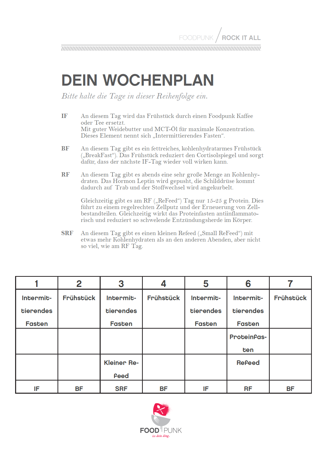 Wichtiger Hinweis: Die Rock It All ist aktuell aufgrund der täglich wechselnden Makronährstoffkombinationen nicht in der Foodpunk App verfügbar. Die Rezepte aus dieser Challenge sind vorwiegend nicht in der Foodpunk App verfügbar. Die Challenge ist für Fortgeschrittene und bedarf viel Planung und Genauigkeit.